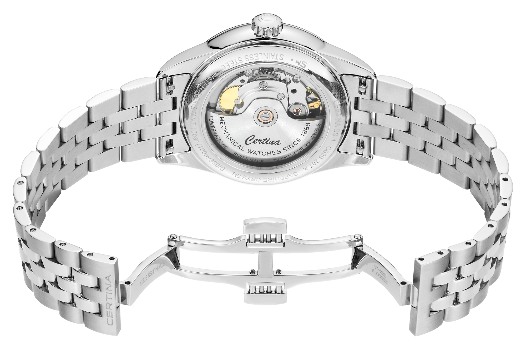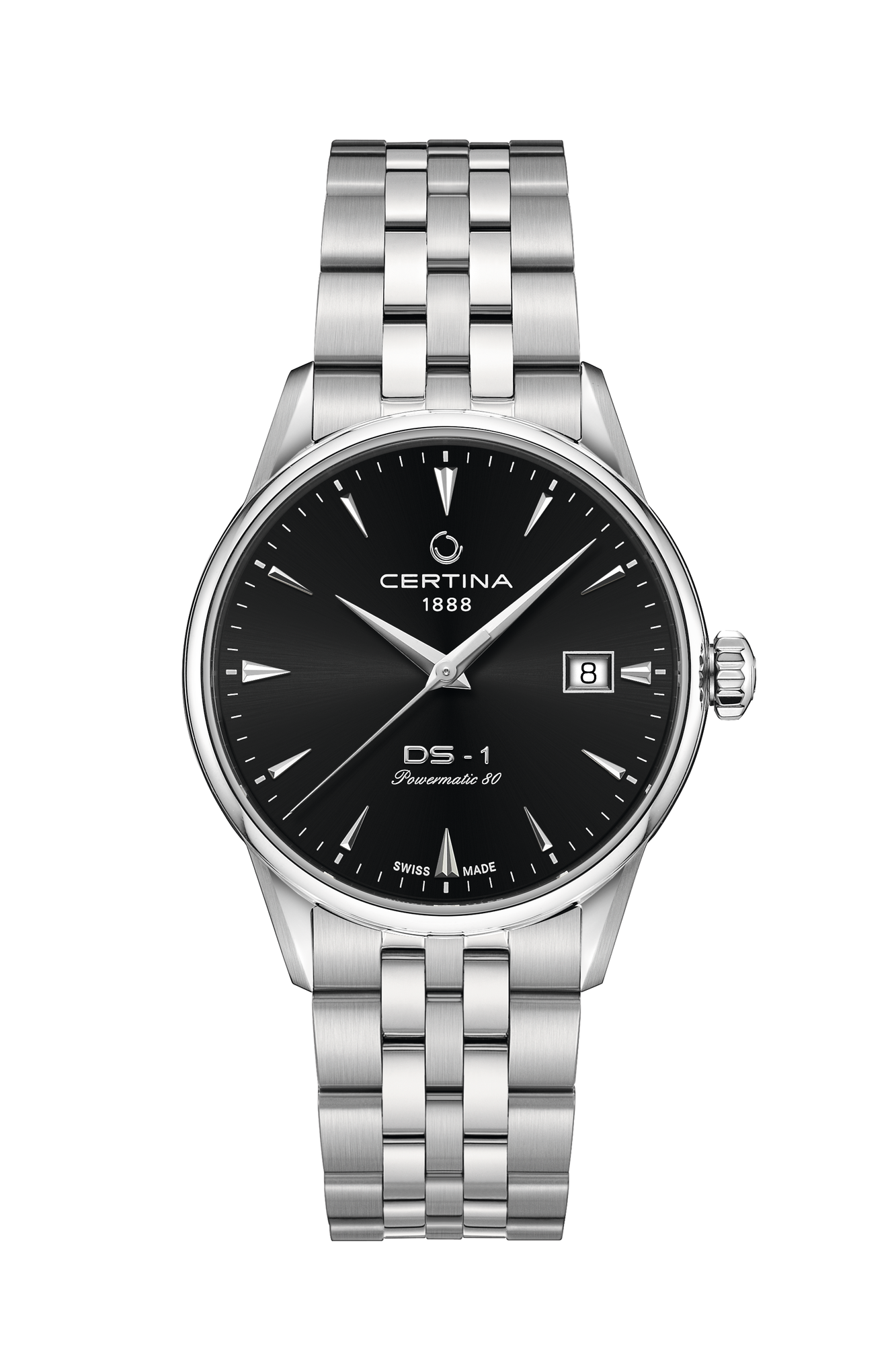 Certina DS-1 38 mm Black Dial (C029.207.11.051.00) on tyylikäs sveitsiläinen automaattikello, jossa yhdistyvät ajaton muotoilu, kestävä ruostumaton teräsrunko ja tarkka Powermatic-koneisto.